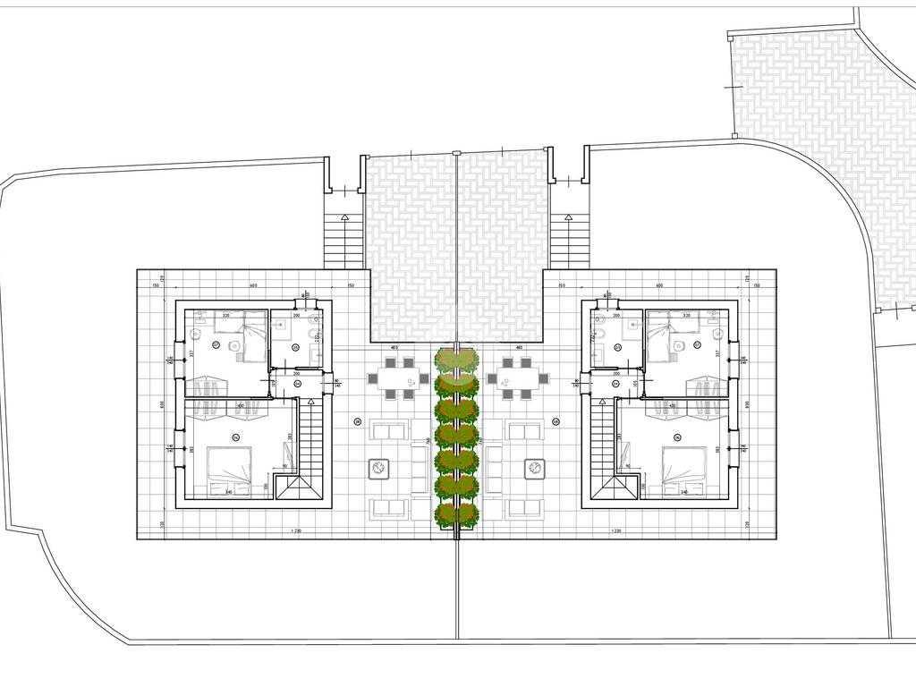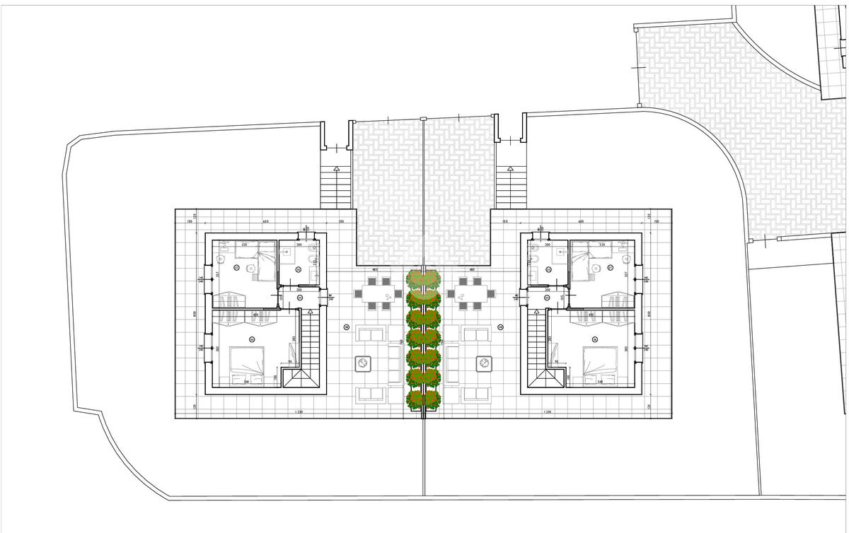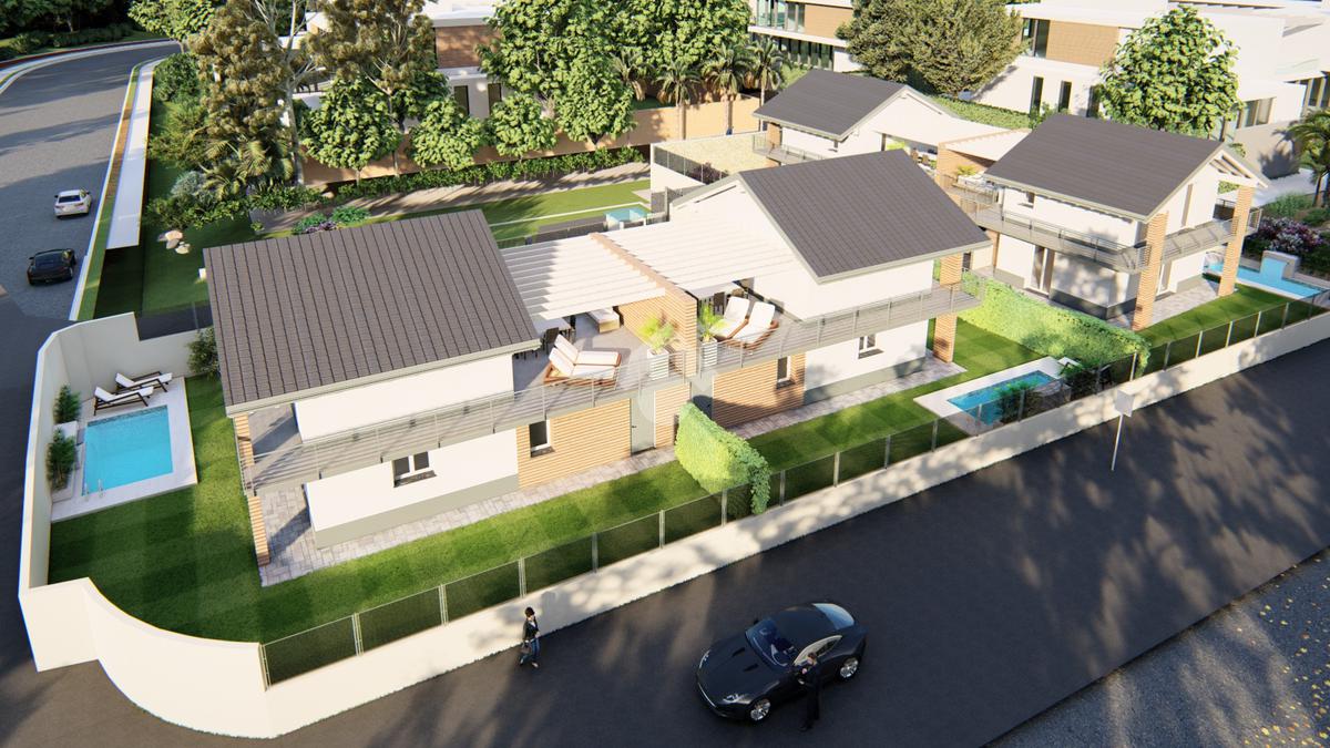 Ogni unità abitativa gode di quattro lati liberi, con ampi giardini di proprietà di circa 200mq, gli spazi interni luminosi e funzionali si compongono di una zona giorno living con cucina a vista e affaccio diretto sul giardino, bagno di servizio, da una scala comoda si accede alla zona notte che comprende due ampie camere e bagno, oltre terrazzo di 70mq. Ogni villetta è separata dal box doppio di pertinenza.